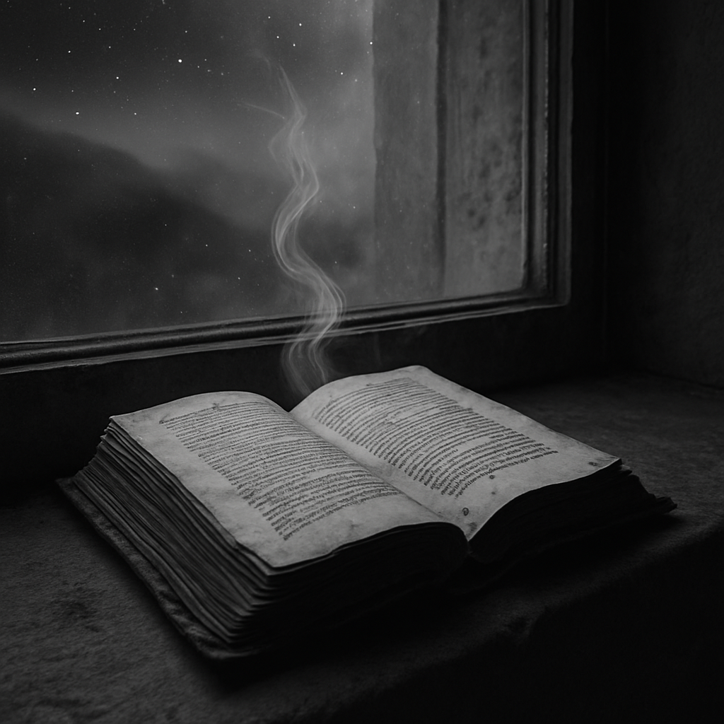 Ink still damp. Smoke still curling. Whatever was written here lingers — half spell, half sorrow.